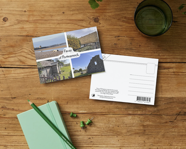 "Faces of Portmarnock" postcard with 4 different views of Portmarnock. Gloss paper, true size high quality postcard
