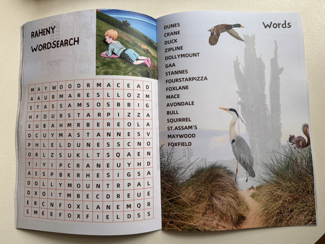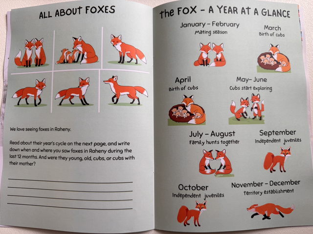 A4 kids’ activity book. 24 pages of fun - Raheny Crossword, Raheny Maze, Wordsearch, colour-in pages, local interest fun facts, pages in St. Anne’s Park, maps, and a special feature on Raheny mile stones - and on foxes. High quality paper, fun design, and a lot of love while making in and reviewing with local kids.