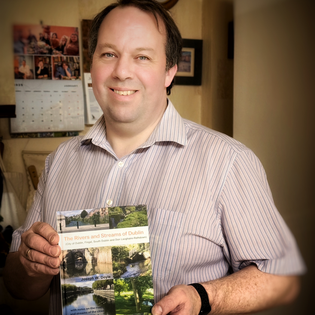 Joe has just got his first hardback print of “Rivers and Streams of Co. Dublin” book. There are over 140 named rivers and streams in Co. Dublin and Joe must have visited at least 120 of them where there is anything to see. Some are hidden in the pipes for a long time it even them they have traces or points where the trucks if water is seen at the estuary when the tide is out….